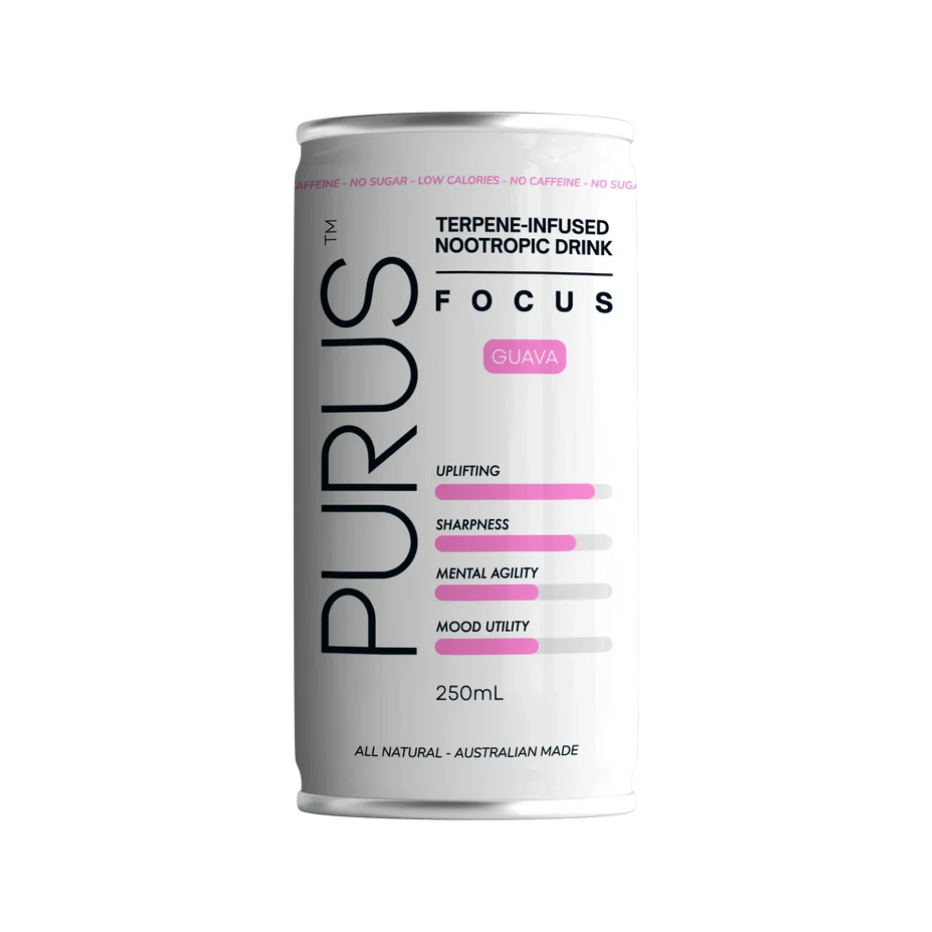Terpene Infused Nootropic Drink. Natural terpene extracts selected to aid mental focus for function, added with a hint of pink Guava for flavour.